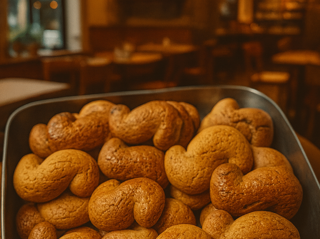 Biscoitos crocantes e aromáticos, com aquele formato em “S” tão típico das cozinhas antigas. Perfeitos para acompanhar café ou chá num ambiente bem caseiro.