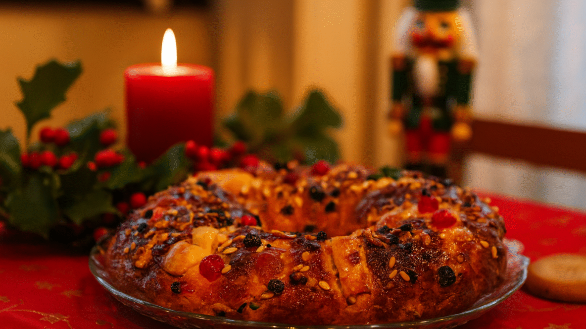 O sabor de um verdadeiro Natal português: massa macia, perfume de citrinos, frutos secos tostados e o brilho característico do Bolo-Rei acabado de sair do forno.
