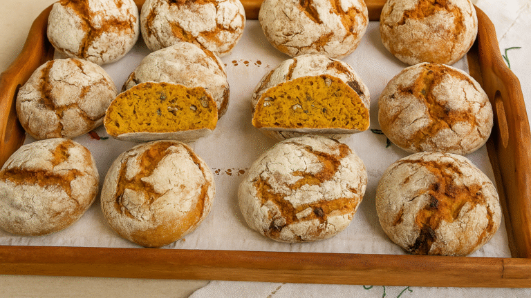 As Broas de Abóbora e Noz são um verdadeiro clássico português, especialmente nas épocas festivas como o Natal e o Dia de Todos os Santos. Têm uma textura leve e húmida por dentro, uma crosta ligeiramente estaladiça e aquele toque delicioso de canela, erva-doce e frutos secos que perfuma a cozinha toda.