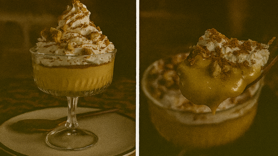 Um clássico das sobremesas portuguesas: creme amarelo aveludado, bolachas embebidas em chocolate e um topo de chantilly leve. Sabor de casa, cara de café aconchegante.