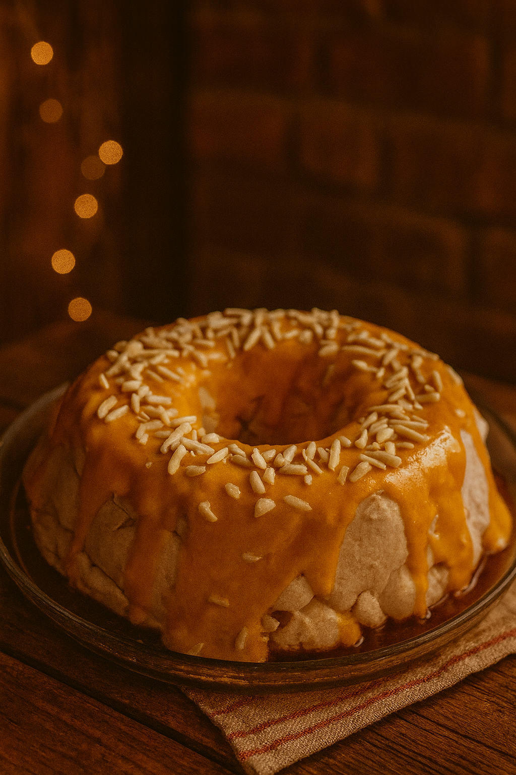 Verta o doce de ovos ainda morninho por cima do molotof.