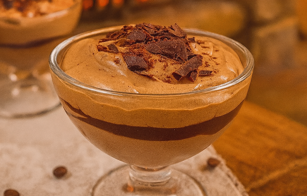 Uma mousse leve, aromática e com aquele sabor a café que conforta — perfeita para dias frios ou para terminar um jantar com um toque especial.