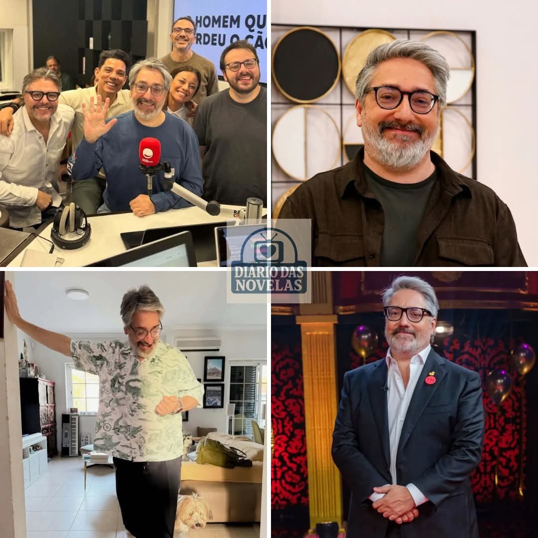 O humorista marcou presença no programa da manhã da estação e foi recebido com grande entusiasmo pelos colegas, entre eles: