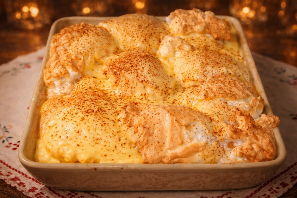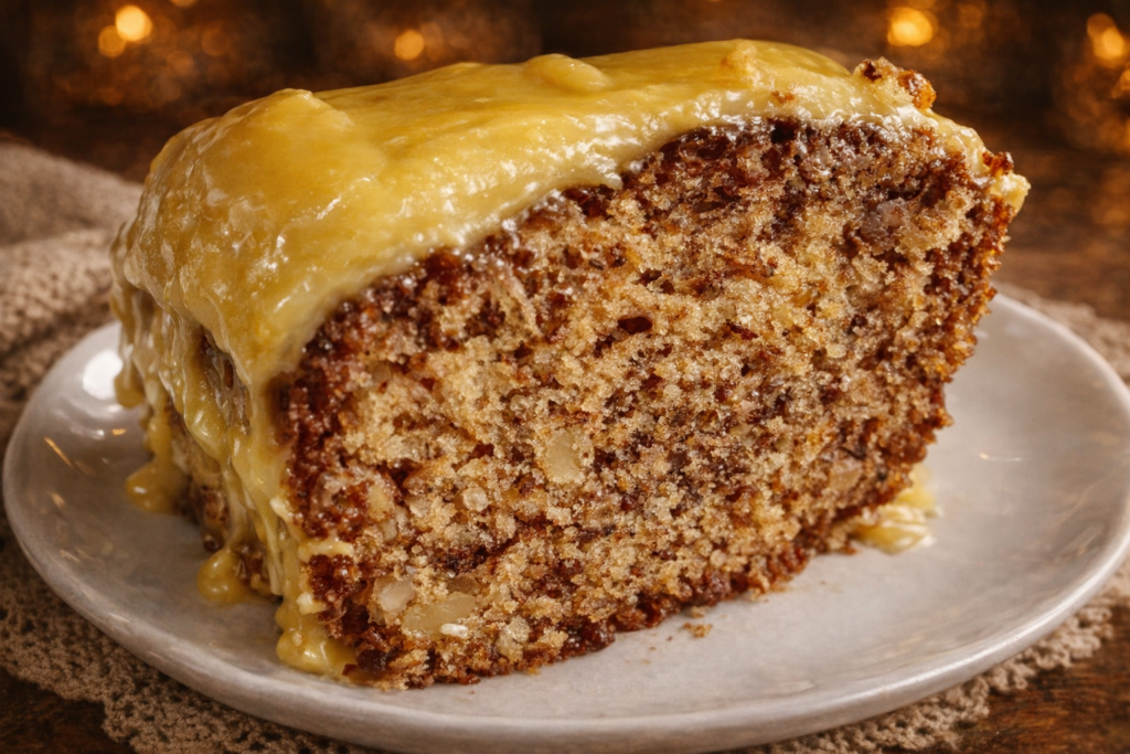 Húmido, dourado por fora e irresistivelmente cremoso por dentro — um bolo simples que sabe…