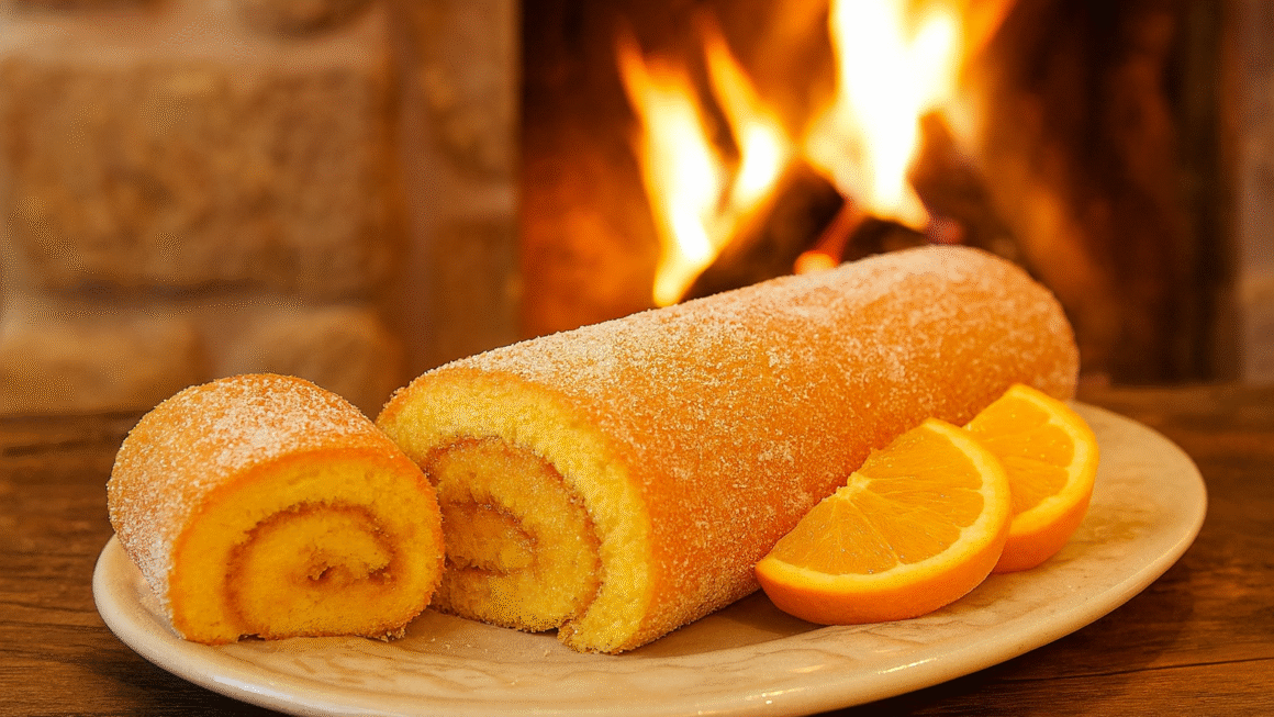 Polvilha um pano limpo com açúcar, vira a torta ainda quente sobre o pano e enrola com cuidado.