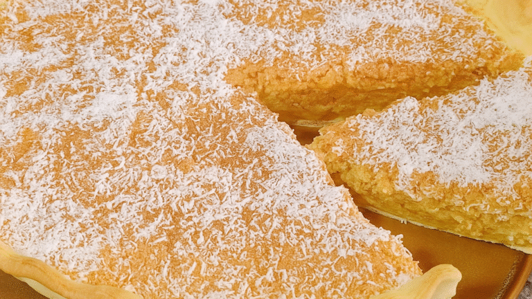 Se gostas de sobremesas fáceis, aromáticas e cheias de sabor caseiro, esta Tarte de Coco e Laranja vai conquistar-te à primeira garfada. A combinação do coco com o toque cítrico da laranja cria um equilíbrio perfeito entre o doce e o fresco. Fica húmida por dentro, ligeiramente crocante por fora e é deliciosa tanto morna como fria — ideal para servir em qualquer ocasião.