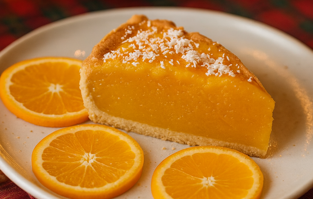 Uma tarte leve, cremosa e cheia de aroma a laranja — daquelas que enchem a casa de cheirinho a conforto. 🍊🥥